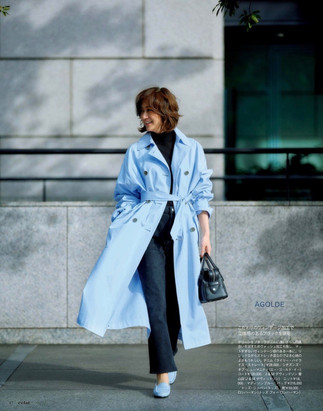 上半身が薄く華奢、どちらかというと下半身にボリューム感がつきやすいのが特徴の骨格ウェーブタイプは、スプリングコートにも柔らかな素材感と空気感のあるようなアイテムをお選びいただくのが正解。全体的に「柔らかな素材感とシルエット」がテーマですね。そして、下半身が重くなりがちな特徴をカバーできるよう、着丈は長すぎないもの、そして上半身にポイントのあるようなデザインがオススメ。ウエストをベルトマークするようなシルエットが◎です。暖かな日は、コートの袖をまくって手首を見せたり、足のくるぶしが見えるようなクロップド丈のボトムスを選んで上半身に視線がいくよう意識しましょう!